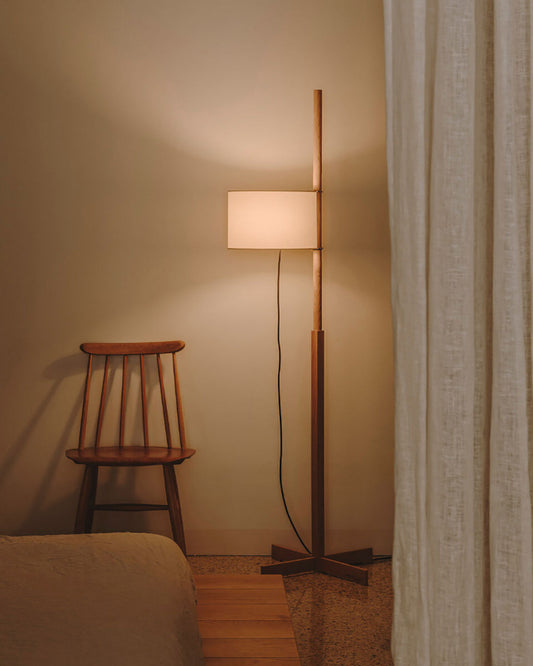 Lampadaire Bois avec Abat-Jour en Tissu