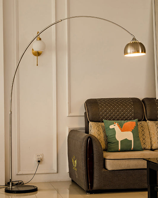Lampadaire Arc avec Abat-jour Dôme Inox