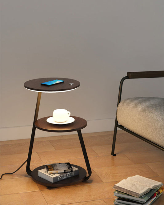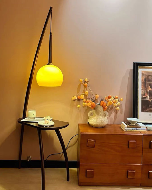 Lampadaire Trépied en Bois avec Abat-Jour Soucoupe