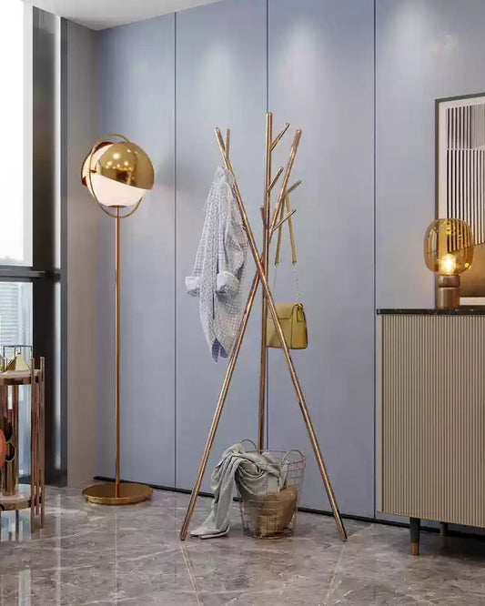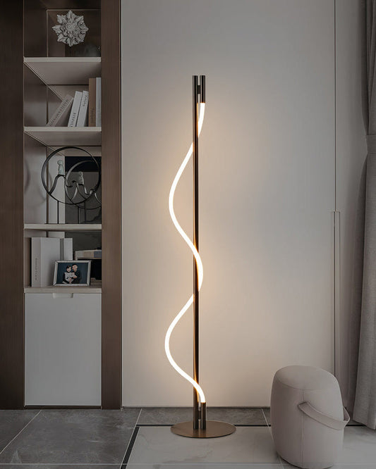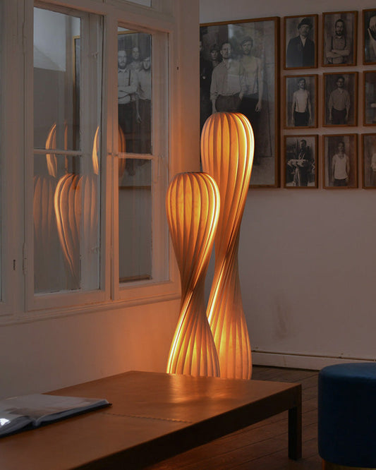Lampadaire en Bois à Tour Torsadée -Élégance Sculptée
